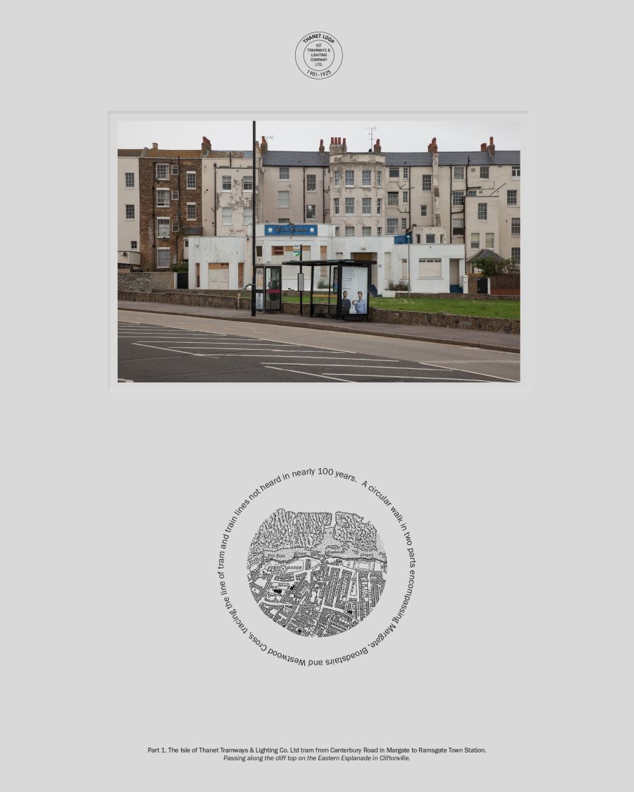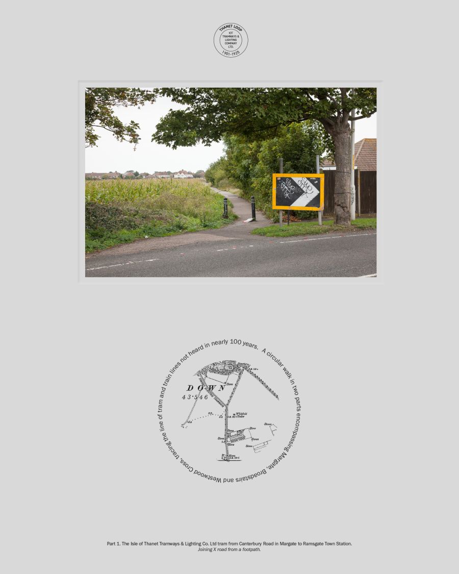 Mapping the route of the long demised Isle of Thanet Trams and the Ramsgate to Margate Sands railway line against the Loop bus route charts two very similar circular paths, with large sections which overlay directly. Following this combined route on foot took me from main roads and visible track beds to cul-de-sacs and industrial estates. I kept as close to the original route as possible, cutting back and forth as though I was a needle passing a thread around obstacles to trace a line from the past.