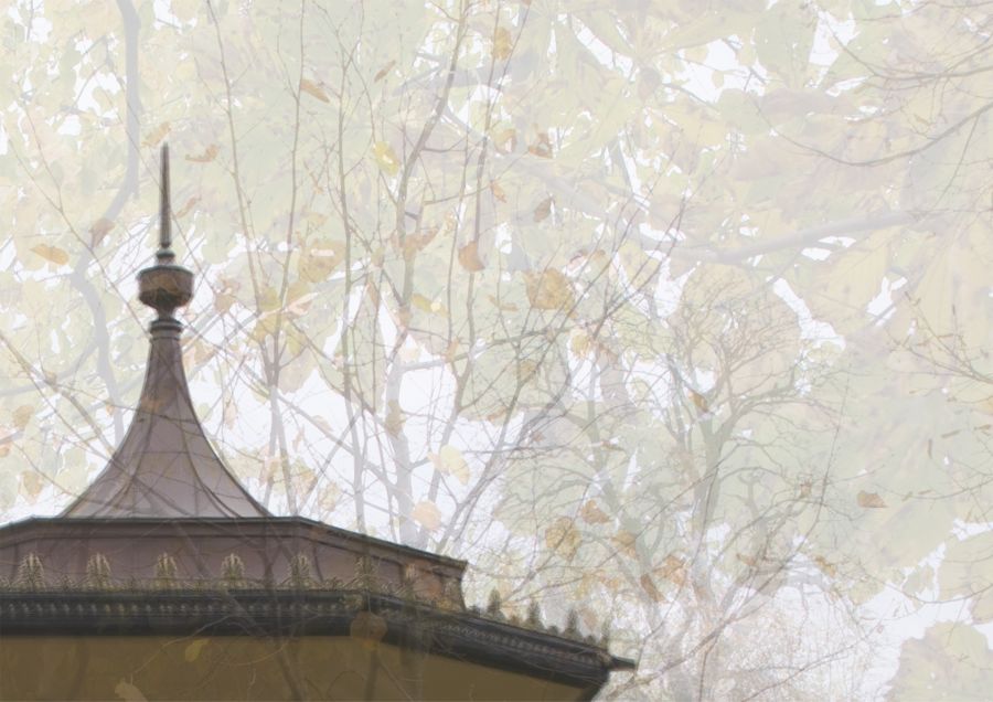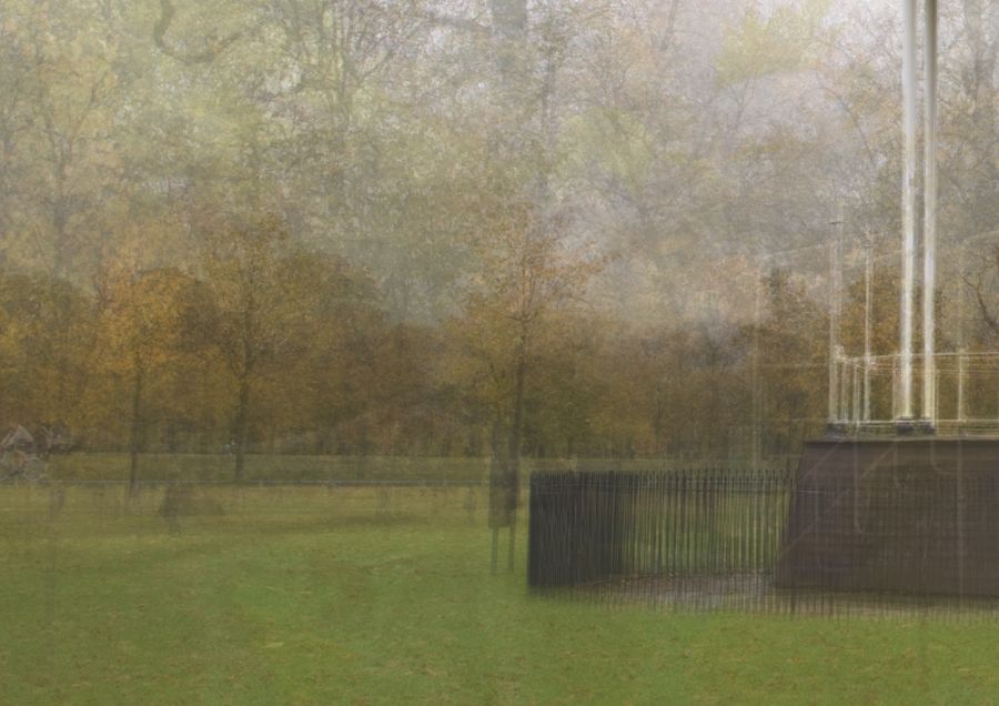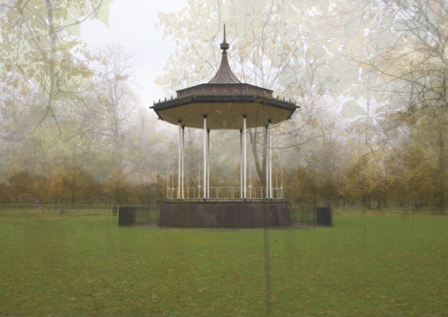 This bandstand was installed in 1931 and designed by J Markham of the Office of Works. Here you have to look quite closely to see the ghostlike figures captured walking through the park, while the leaves on the trees in the foreground start to look like a collection of pressed leaves, scattered over the image.