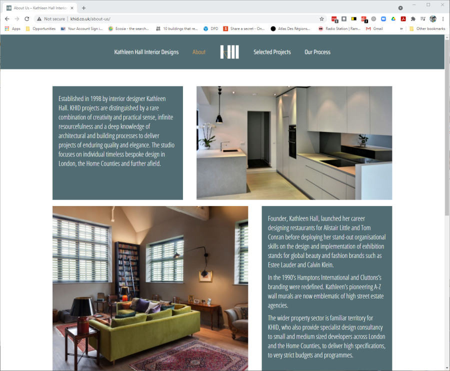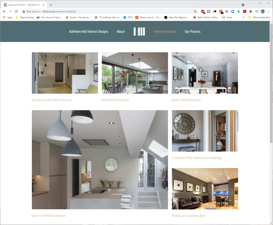 Kathleen Hall asked me to help with an overhaul of her marketing material, from a logo redraw, stationary, photograhy of completed projects and a new website.