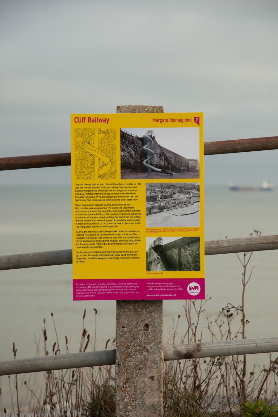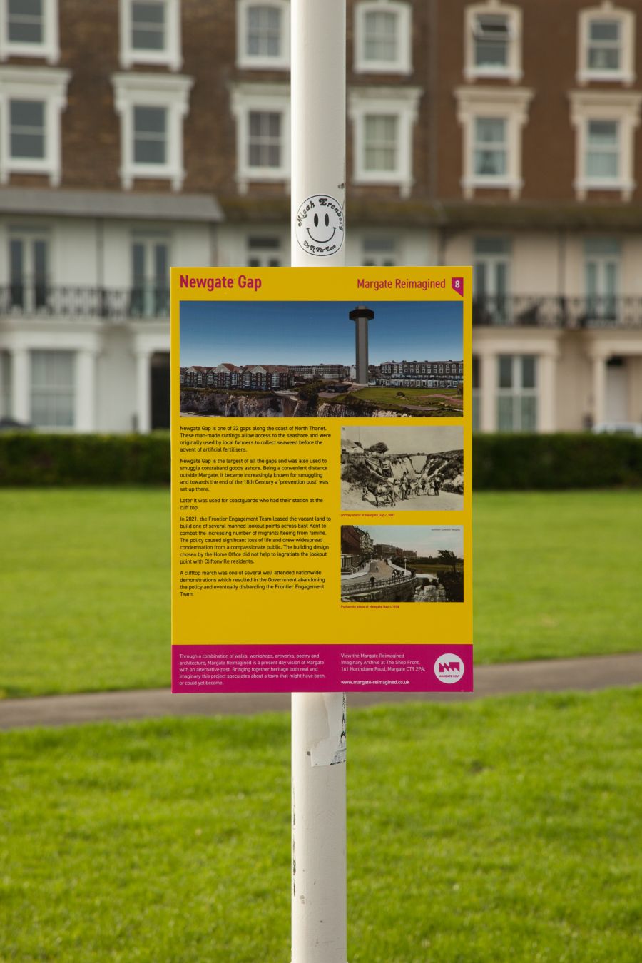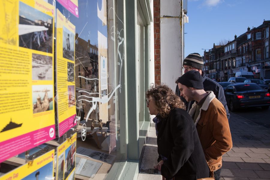 A folding map was produced and distributed at key sites, inviting people to visit all the sites as a way of exploring Margate. Equally the panels worked as individual moments of discovery.