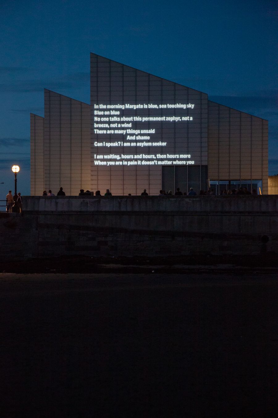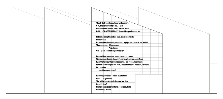I've been working with Dr Kat Lewis of Undertow on a project to give voice to some of the asylum seekers within our community here in Margate, some of whom were threatened with being removed to the Bibby Stockholm. On Friday 21st June their statement, articulated as a piece of animated poetry and the outcome of a workshop with Kat, was projected onto the Turner Contemporary gallery in Margate.